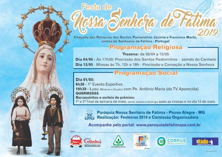 Na próxima terça-feira, 30, a Paróquia Nossa Senhora de Fátima de Pouso Alegre (MG) inicia sua tradicional festa em louvor à padroeira. As atividades religiosas e sociais acontecem na comunidade matriz.