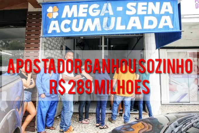A Mega-Sena pagará R$ 289,4 milhões a um apostador que faturou, sozinho, o maior prêmio já pago em concursos regulares na história da loteria.