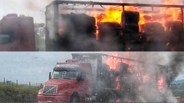 Na tarde desta quinta-feira (16) uma carreta que estaria carregada com tapetes automotivos, ficou em chamas na Fernão Dias, próximo ao trevo que dá acesso a cidade de Careaçu, aqui no Sul de Minas. O Trânsito neste momento, está fechado na pista sentido SP.