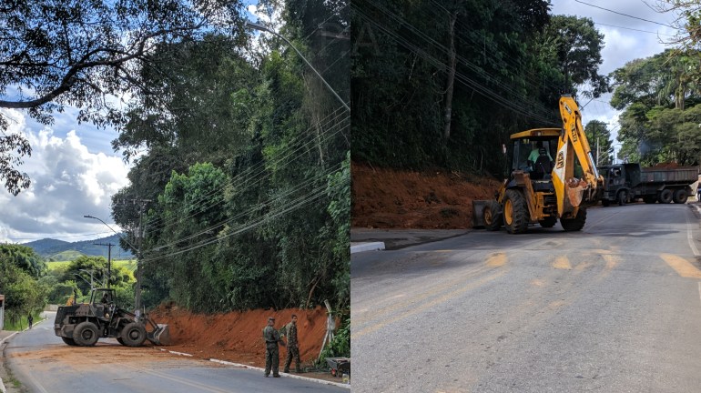Nesta quinta-feira (16) militares do exército estão trabalhando em uma das entradas do bairro São João, o mais populoso de Pouso Alegre. Com maquinário pesado e um caminhão, estão retirando terra da lateral direita da Rua Três Corações sentido bairro.