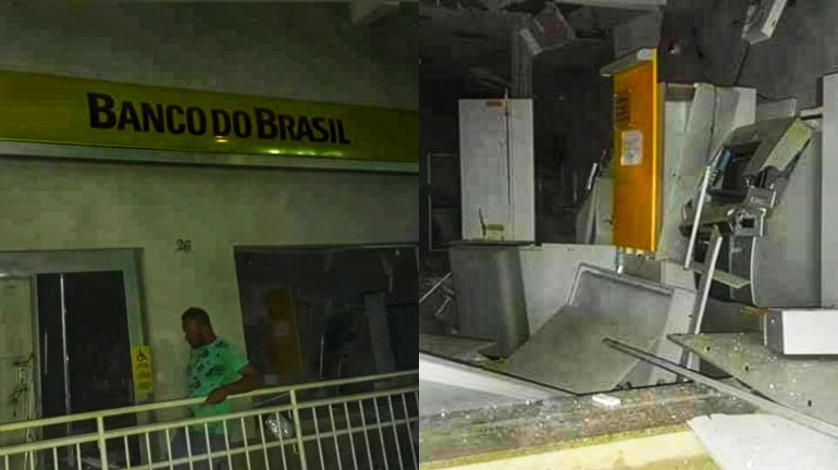 Bandidos explodiram o Banco do Brasil na região central de Heliodora nessa noite.