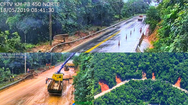 Também disse que foram feitas análises para evitar os riscos, aplicadas contenções em diversos trechos, tratamentos de trincas em blocos rochosos e melhorias em drenagens.