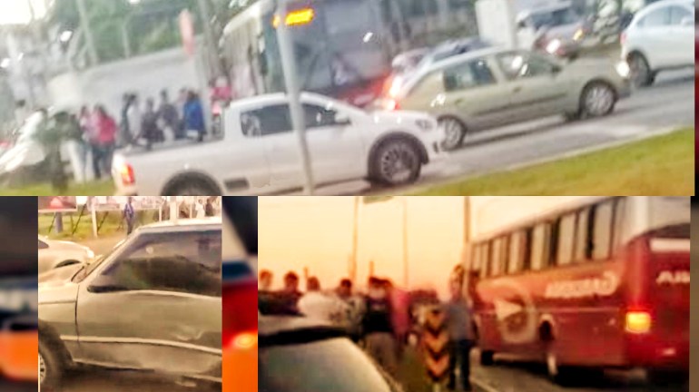 No fim da tarde desta segunda-feira (27) um acidente envolvendo um Ônibus da Expresso Gardênia e um carro Fiat Uno, na rotatória da Av. Perimetral, deixou o trânsito lento na região. SAMU e PM estiveram no local. Graças a Deus, sem vítimas. Apenas o susto.