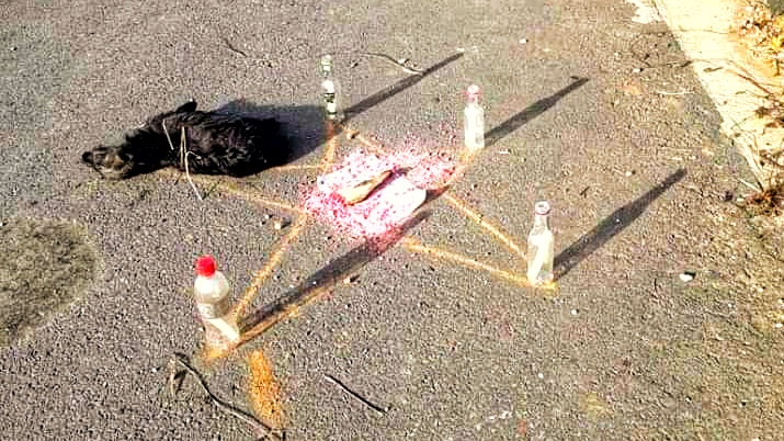 “Hoje de manhã fomos contactados a respeito de um trabalho de magia realizado em um loteamento da cidade envolvendo um animal doméstico (cão) amarrado com arame.