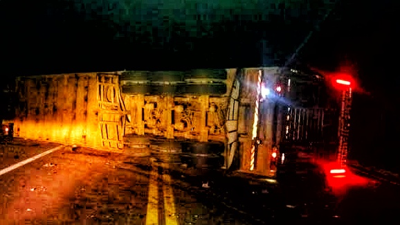 Agora Pouco na rodovia Fernão Dias, uma carreta tombou na pista.