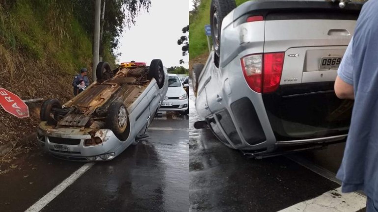 Um capotamento no final da tarde desta segunda-feira (03) na Av. do Contorno em Varginha aqui no Sul de Minas, no trevo que dá acesso a Elói Mendes.